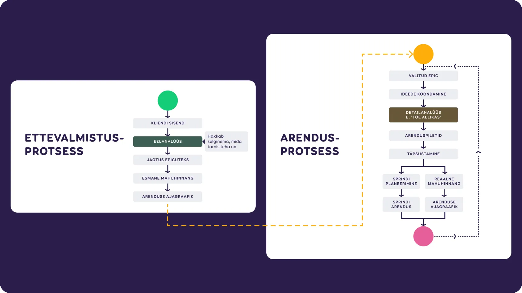 - Tulemid: analüüsidokumentatsioon (eel/detailanalüüs), arenduspiletid.