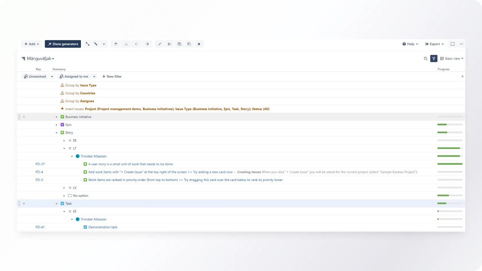 - Issue detail view – when it becomes necessary to dig deeper into certain issue details, you could just click on the issue key. A pop-up screen with an issue detail view will appear on the same board view without opening the issue detail view in a separate tab (like in Advanced Roadmaps).