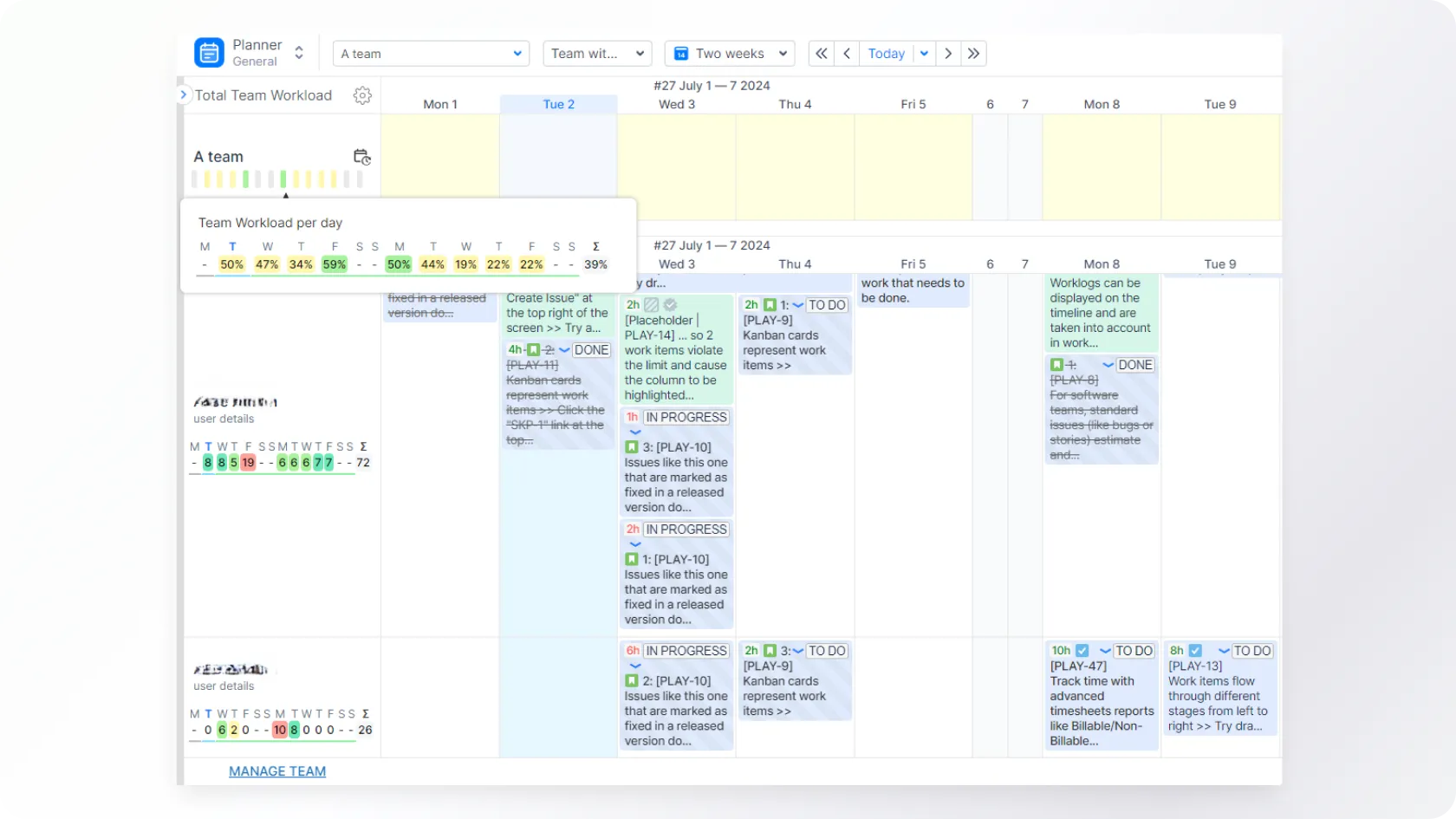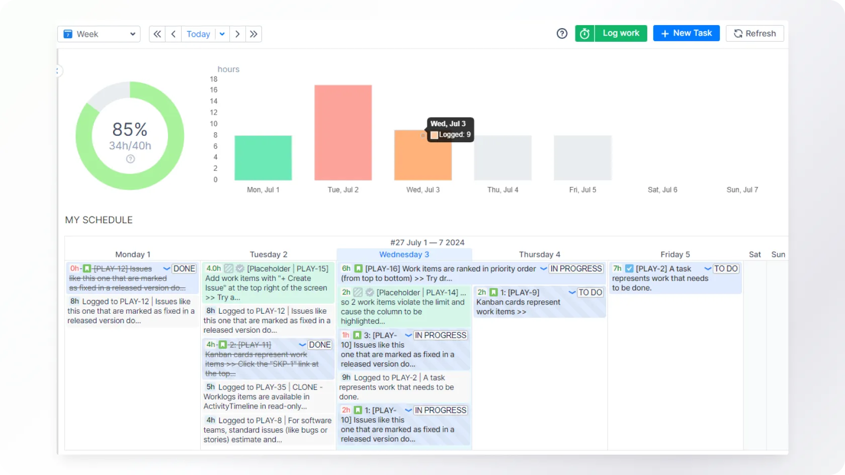 Jira's tickets, workflows, and visual views provide an easy way to get an overview of current work. However, from a project management perspective, just having a view of tasks may not be sufficient without insight into employees' workloads.