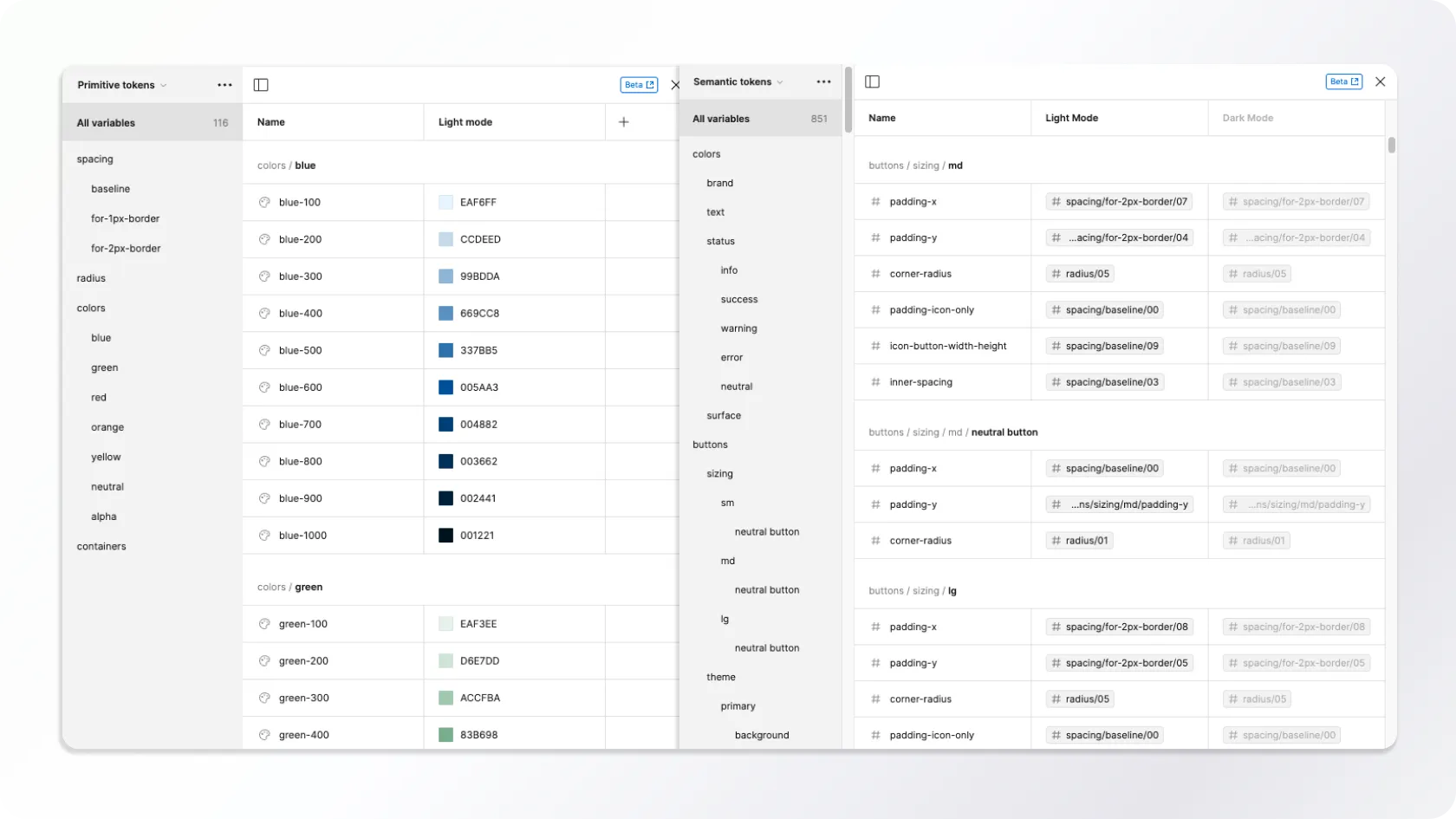 Despite Figma's exemplary feature set, we faced a significant question at the start of the project: how exactly to solve the creation and use of Design Tokens in Veera?