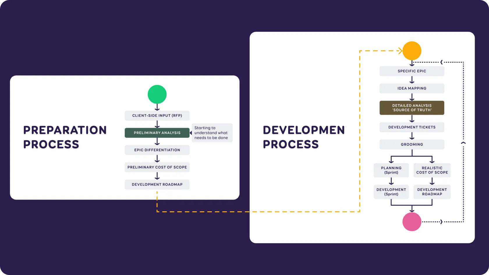- Outputs: Analysis documentation (preliminary or detailed analysis), development tickets.