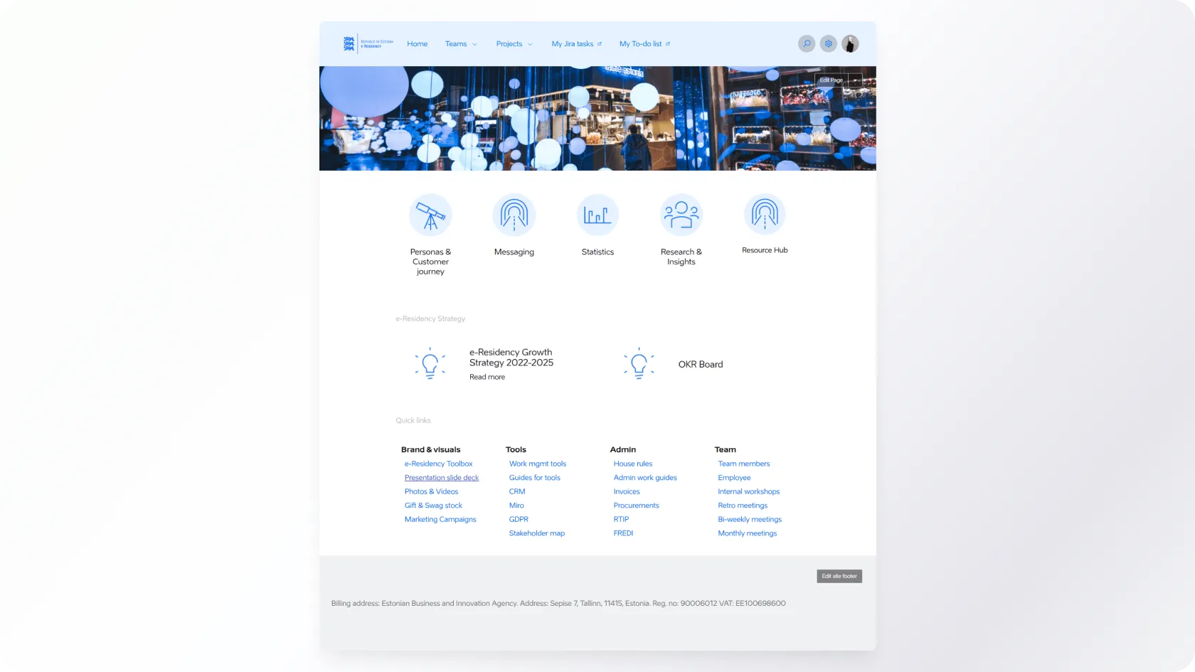 After our thorough preliminary work, we built a new central intranet for the e-Residency team using Atlassian’s Confluence software and its site building product Refined.