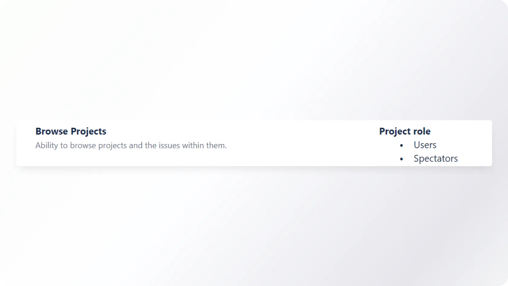 If Jira groups are global, then roles are project specific. The illustration of a permission scheme below shows that the ‘Browse projects’ permission is granted to two roles.