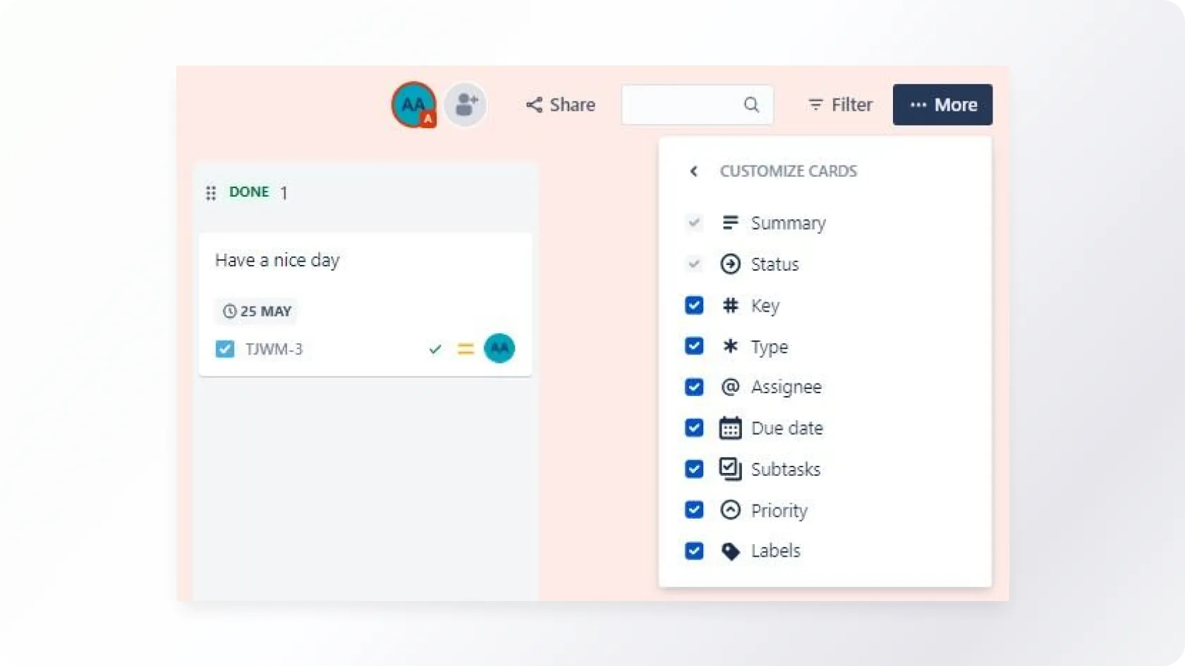 Like in Jira Software, one of the key features of JWM is a board to track issues displayed as cards. However, the JWM board and its possibilities are relatively limited: