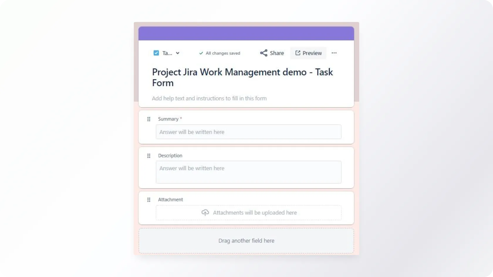 Forms can be associated with issue types, and they include desired fields that receivers can fill in. The filled and returned forms appear as new issues in a project.