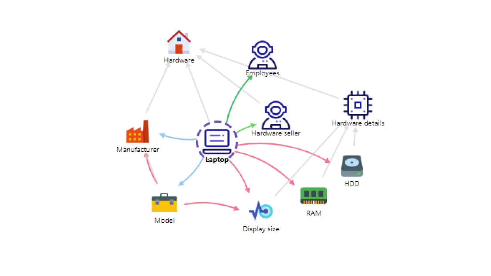 From the CMDB point of view, two objects are engaged in the process - the user (described in the personnel schema) and the laptop (documented in the asset schema).