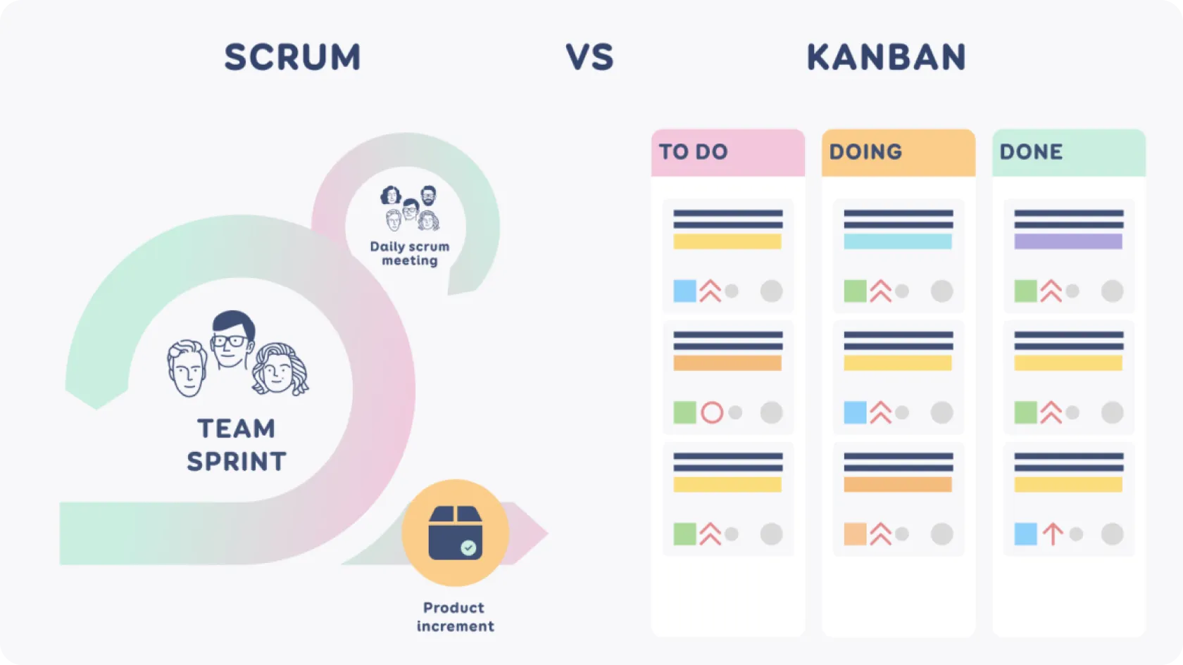 There are various frameworks that use this mindset in the agile world. The most popular ones are Scrum, Kanban, and their hybrid form Scrumban. Each framework has its own approach that is suitable for realising different kinds of projects based on their nature. In this post, we will describe the three most popular frameworks and their properties to help you make the best decision for your project.